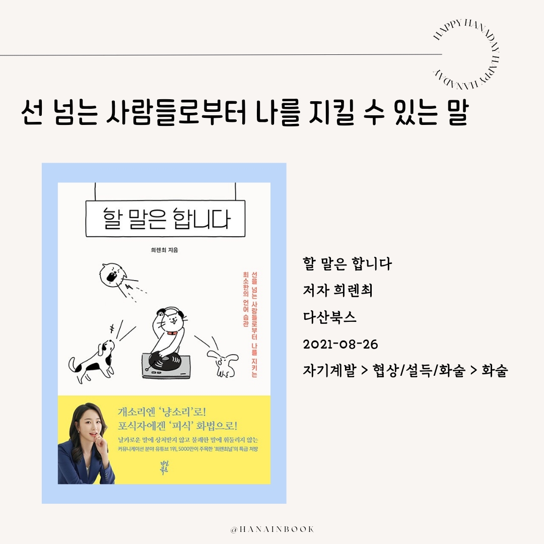 상처받는 큰 일들이 연달아 생기자 20대 초반부터 인간관계, 대화기술 등의 주제가 담긴 자기계발서를 엄청나게 읽으며 스스로를 지키기 위해 커뮤니케이션 능력을 향상시켜려 노력했었습니다.