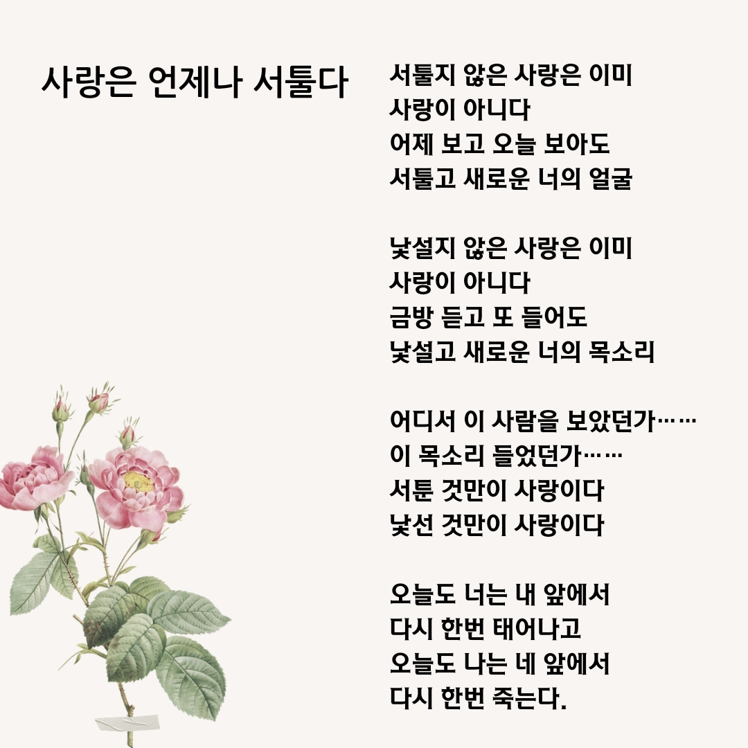 바로 제가 좋아하는 시인 중 한 분인 나태주 시인의 『서로가 꽃』입니다.