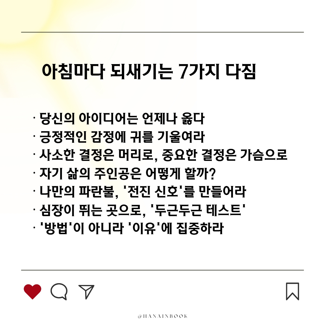 아침마다 스스로에게 던지는 질문과 다짐이 오늘을 어떻게 살아갈지를 좌우하죠.