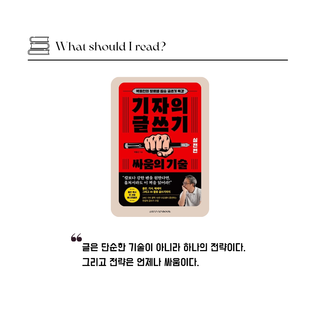 모든 것이 실전 중심이기에 단지 기자 지망생만이 아니라 현실을 감각하고 싶은 사람이라면 누구든 펼치길 추천합니다.
