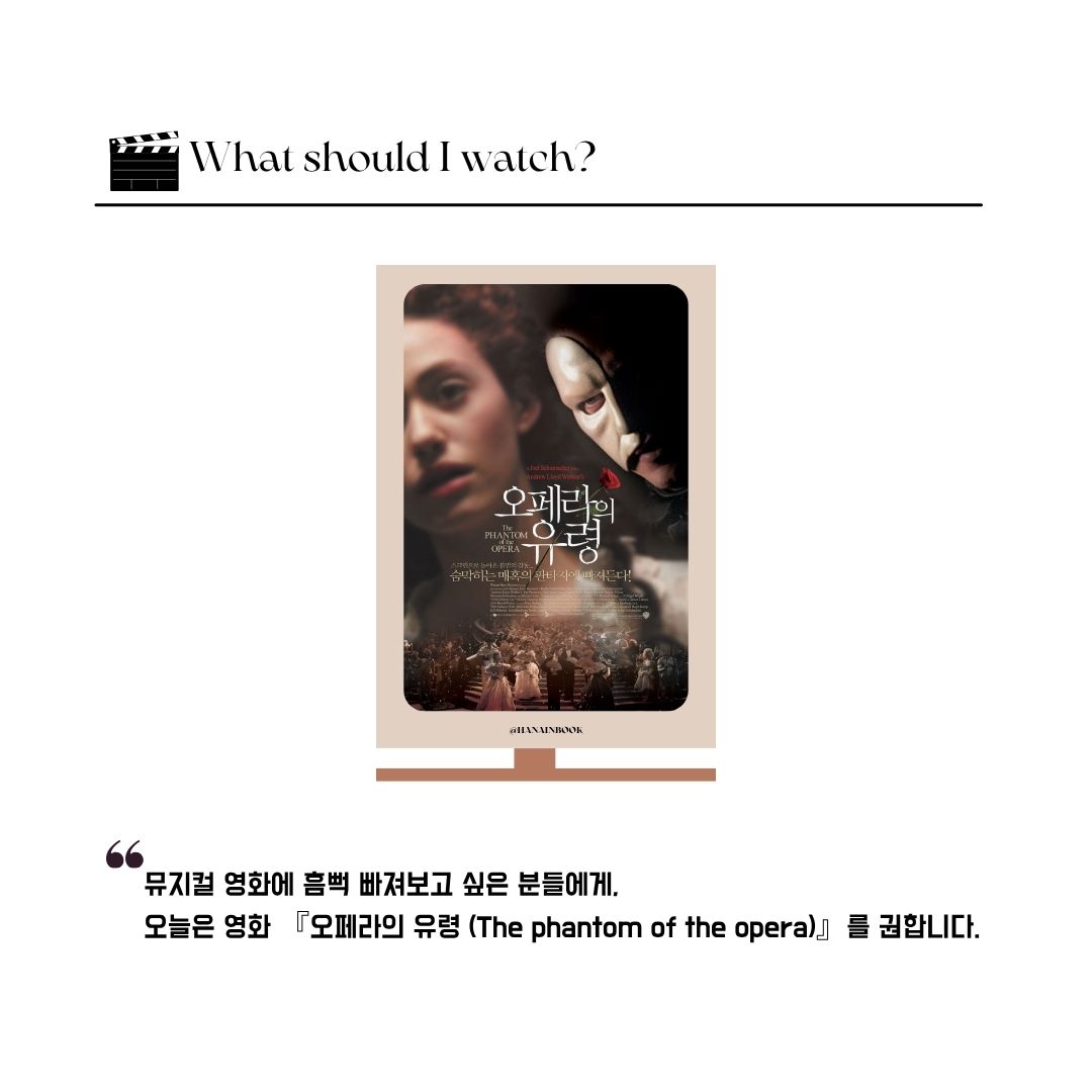 오늘은 영화 『오페라의 유령(The Phantom Of The Opera)』를 권합니다.