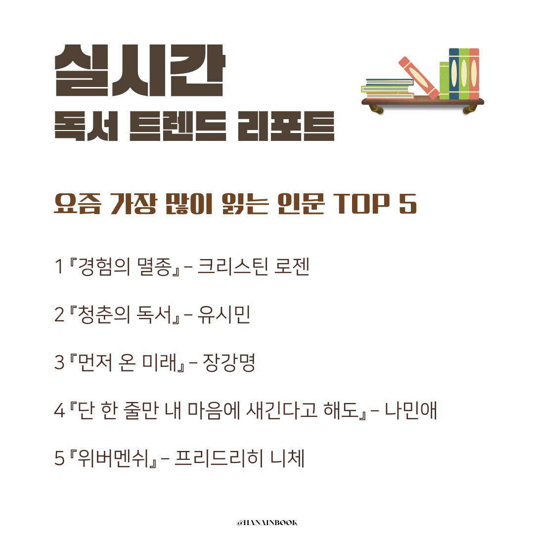 이번 달 인문 베스트셀러의 흐름은 빠른 시대 속에서 느린 사유를 붙드는 독자들의 선택이 돋보였습니다.