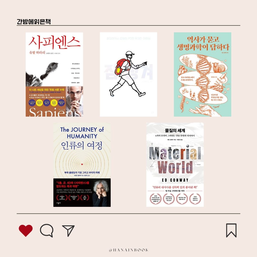 이번 주는 인류 역사를 중심으로 인문학부터 여행 에세이, 세계사까지 폭넓게 읽으며 제 하루에 작은 쉼표이자 질문을 남겼습니다.