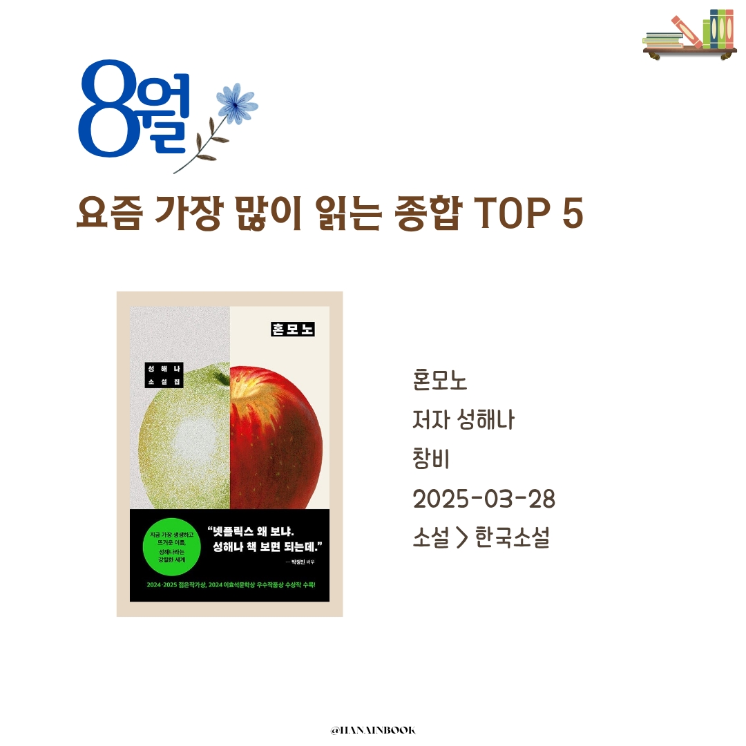 하나의책장 | 2025년 8월 종합 베스트셀러 리포트