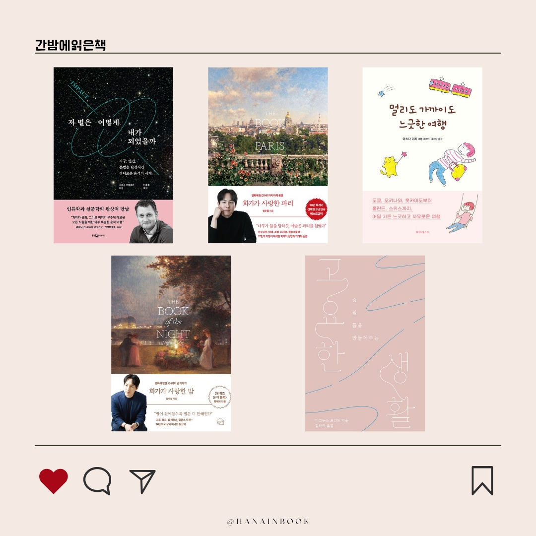 지난 주와 연결지어 읽던 별을 바라보는 과학자의 시선 그리고 화가들이 사랑한 파리의 낮과 밤, 너무 멀지도 가깝지도 않은 여행의 온도, 삶을 고요하게 유지하는 태도까지.