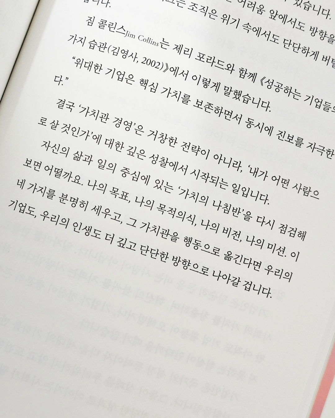 결국 가치관 경영은 내가 어떤 사람으로 살 것인가에 대한 깊은 성찰에서 시작되는 일입니다.