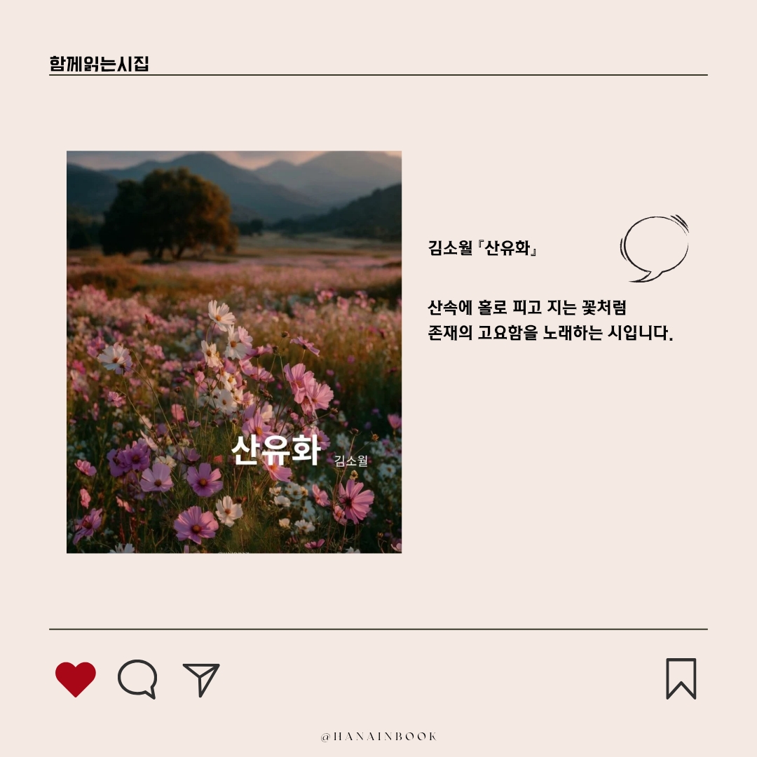 산속에 홀로 피고 지는 꽃처럼 존재의 고요함을 노래하는 시입니다.