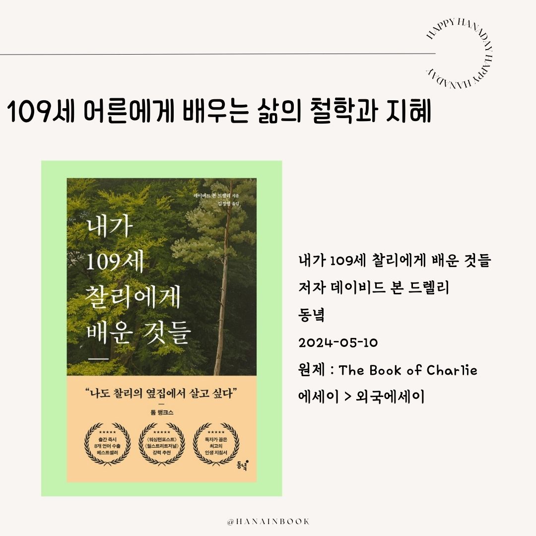 저자 앞에 운명처럼 나타난 한 노인의 이름은 찰리, 그의 나이는 109세입니다.
