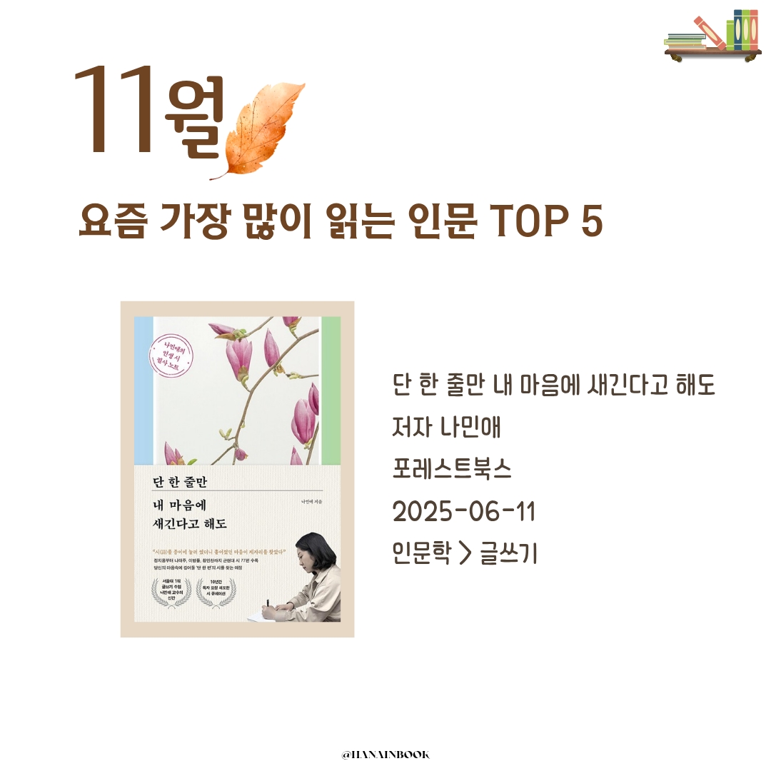 2025년 11월, 요즘 가장 많이 읽는 인문학 TOP 5