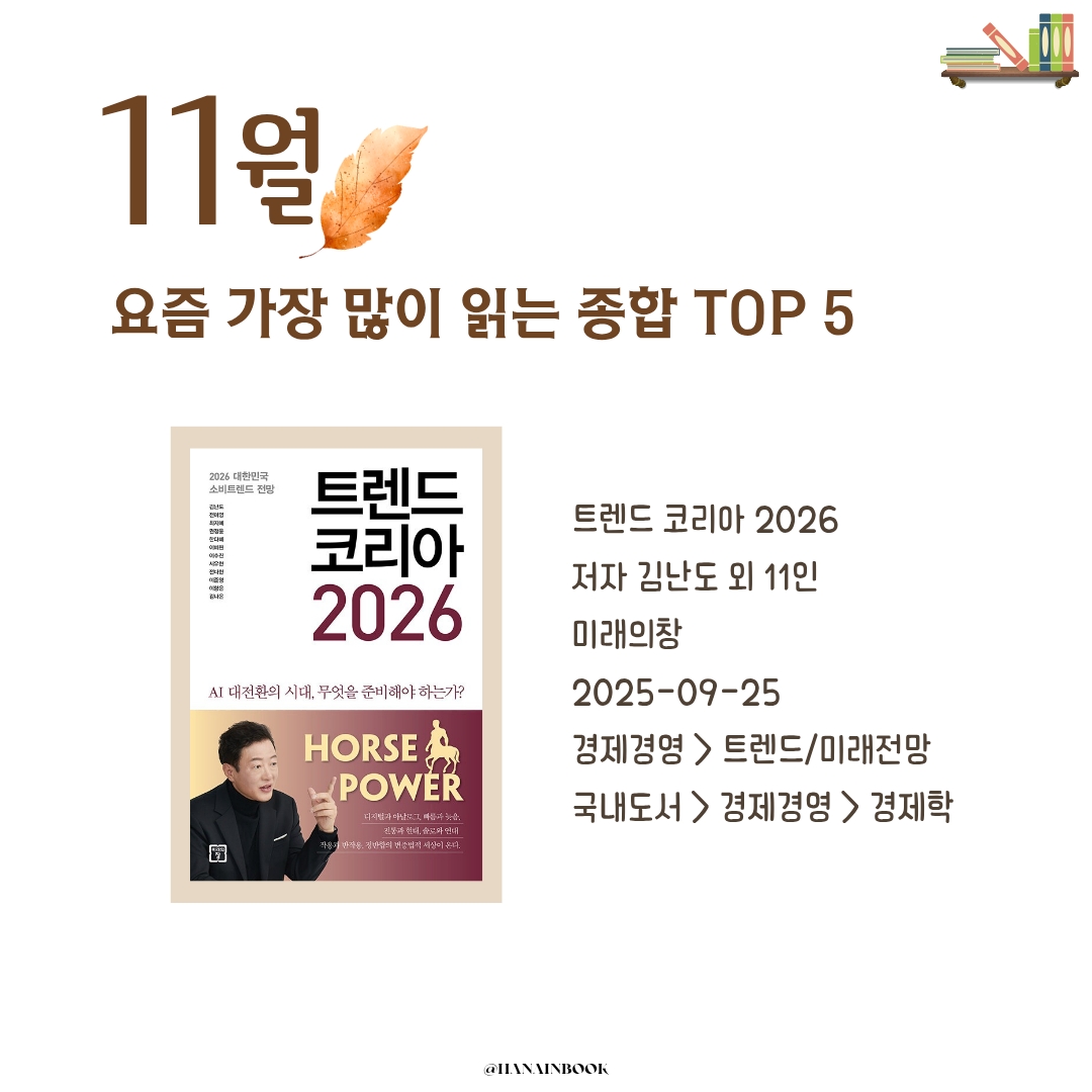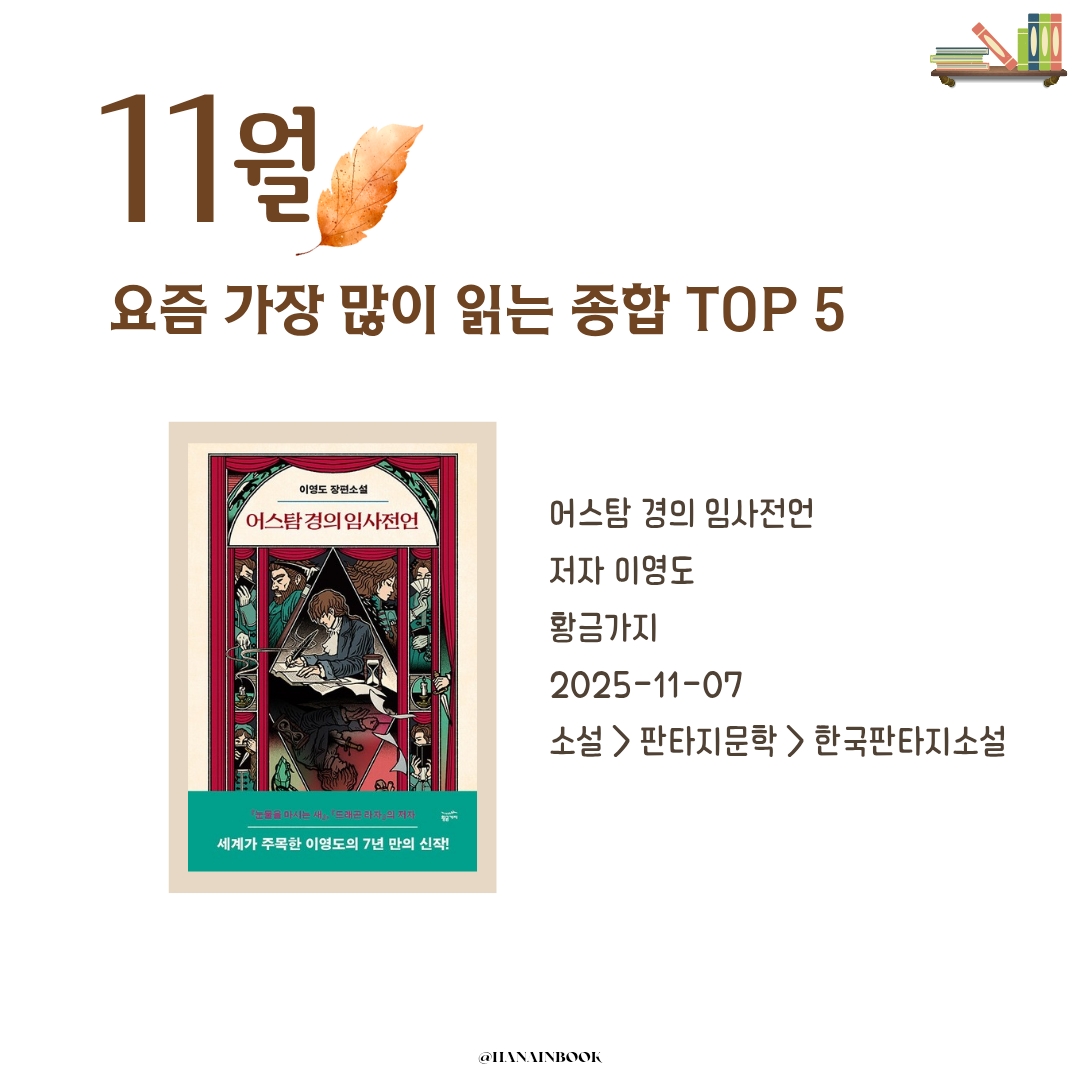 2025년 11월, 요즘 가장 많이 읽는 책 TOP 5