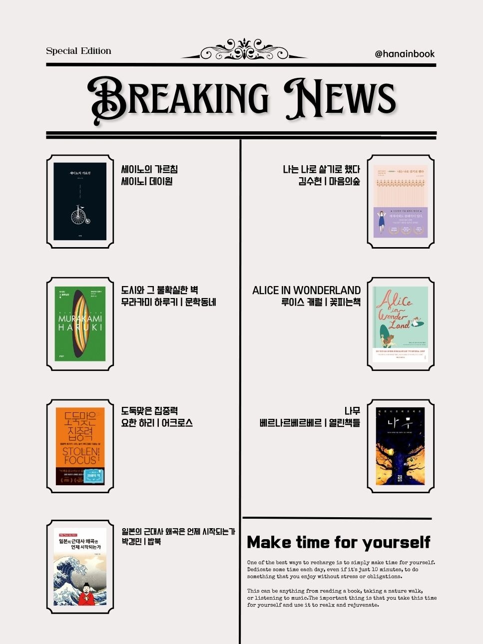 심적으로 무너졌을 때 보았던 책이라 애착이 갈 수밖에 없다.